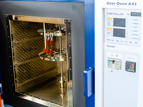 配合したゴムの熱劣化や薬品浸漬試験など要求された条件を合格した製品なのか社内で確認。
